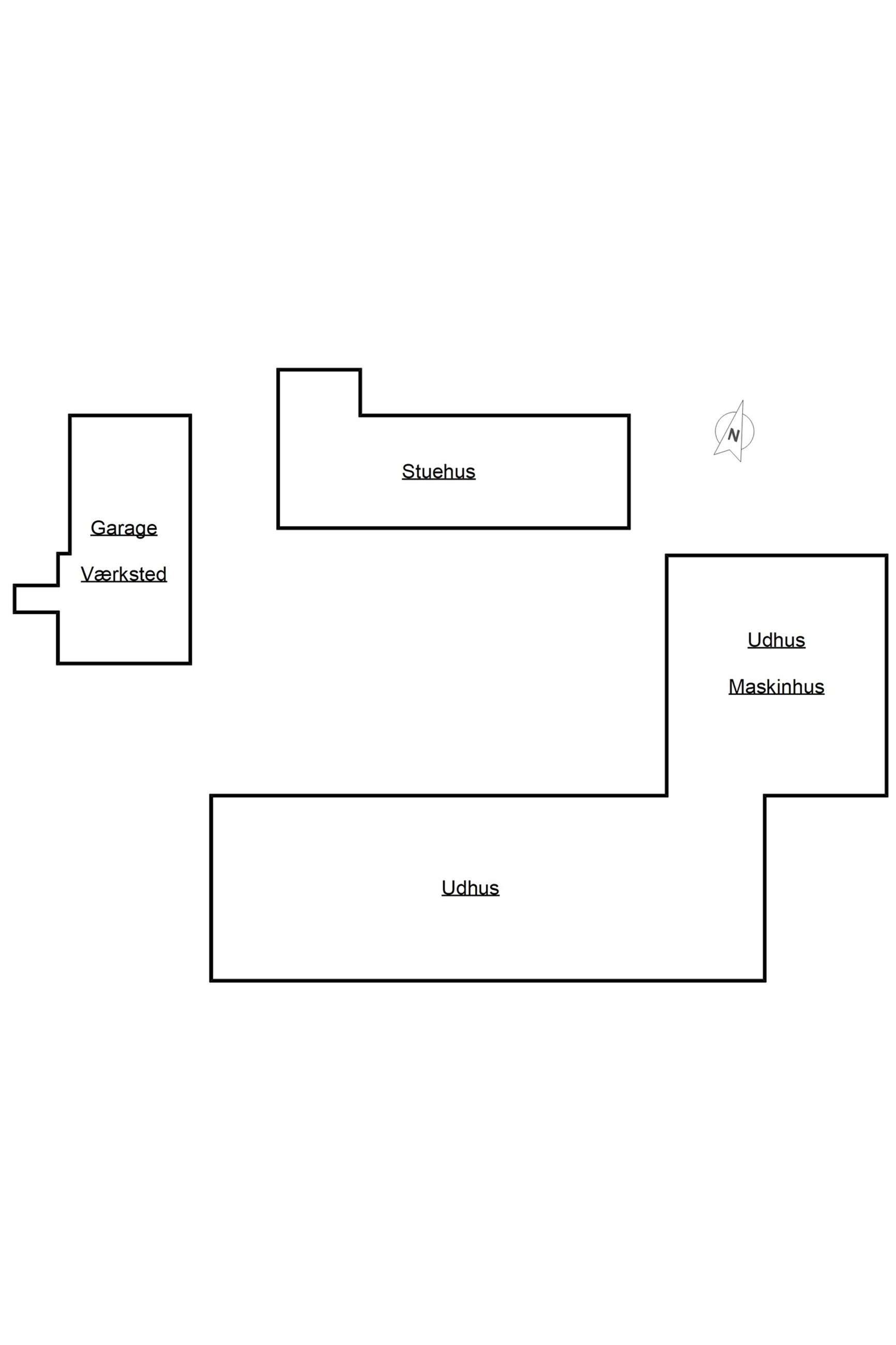 lade/maskinhus og stalde som er ryddet for inventar.