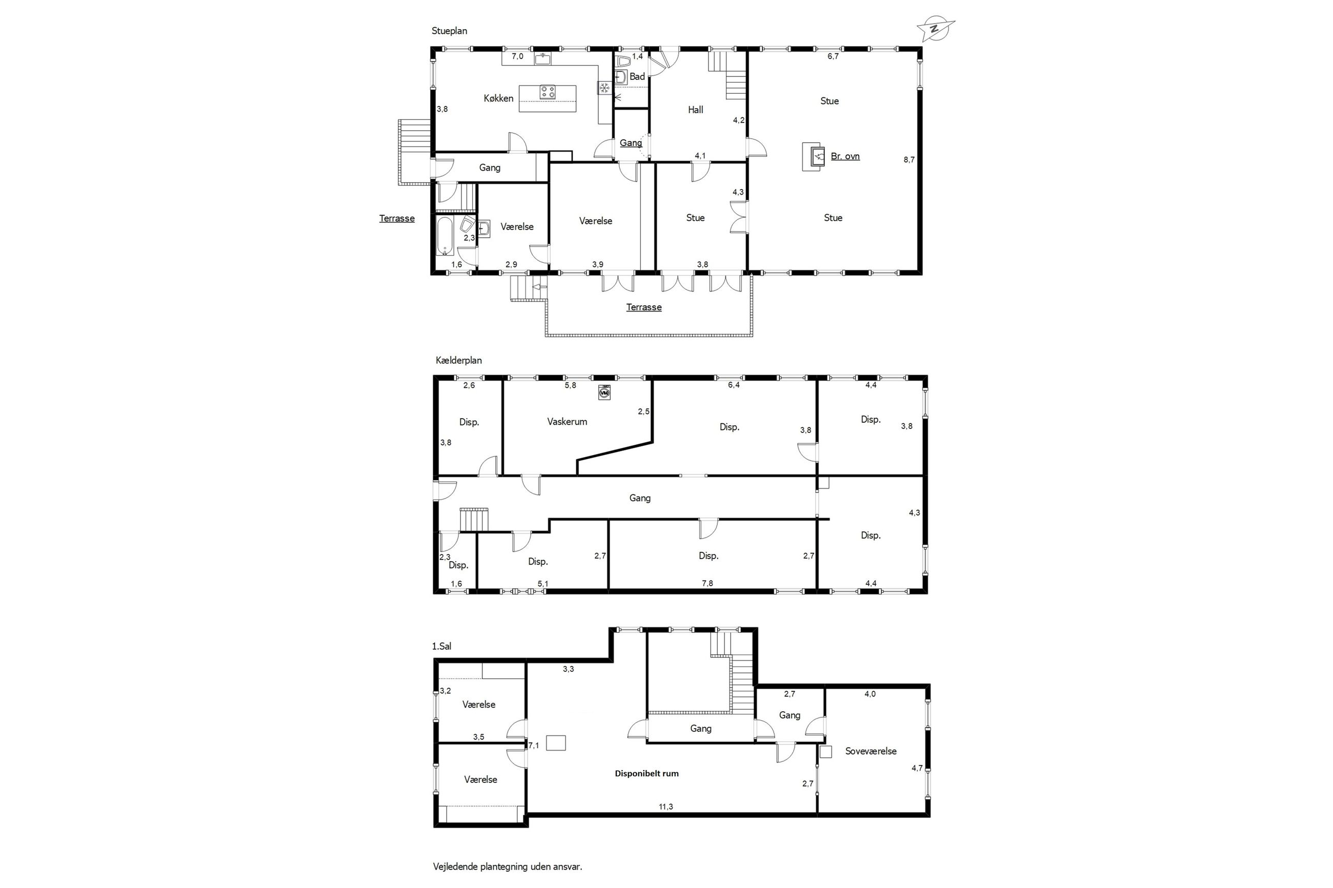 Bygningerne består af en stor herskabelig hovedbygning med tilhørende 3 landbrugsbygninger, hvilket samlet giver et roligt og harmonisk gårdmiljø.